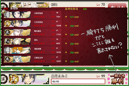 ※因みに私の第一部隊はオールLV1の三日月爺と鶴爺と+αです。(完全に趣味)